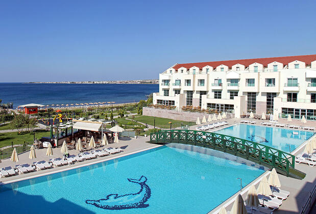 Denize sıfır konumlanan tesisin 100 metrelik kum çakıl karışık plajında sonsuz mavilikle buluşabiliyor ya da yüzme keyfini açık havuza taşıyabiliyorsunuz. Biri karma, diğeri bayanlara özel 2 termal havuzunda şifalanırken, 5. 000 metrekarelik dev SPA'sında da tüm yorgunluğunuzu unutabiliyorsunuz.