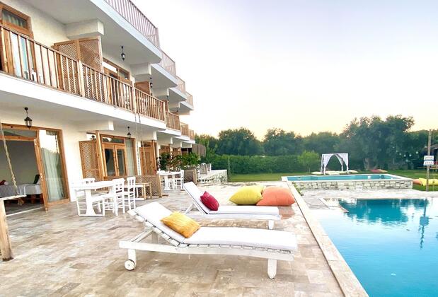 İster standart ister suit, her biri özenle dekore edilmiş odalarında konaklayarak gününüze taze ve leziz bir açık büfe kahvaltıyla başlayabilirsiniz. Otel, konforlu bir konaklamanın yanı sıra serinletici içecekler için sıcak bir davet sunan barda veya çevresindeki lezzet duraklarında bölgenin en güzel tatlarını deneme imkanı veriyor. 24 saat açık resepsiyon, ücretsiz Wi-Fi erişimi, sigara içilmeyen odalar ve çeşitli etkinliklerle dolu bir tatil sizi bekliyor. Aileler ve çocuklar için düzenlenmiş oyun alanlarında keyifli anlar geçirebilir, Alaçatı'nın merkezinde kısa bir yürüyüşle bölgenin tarihini ve kültürünü keşfedebilirsiniz. Plaj severler için birçok plaja kolay ulaşım sunan otel, hem deniz hem de eğlencenin tadını çıkarmak isteyenler için mükemmel bir seçenek. Otel, misafirlerine İzmir Adnan Menderes Havalimanı'ndan ulaşım kolaylığı da sağlıyor.