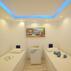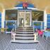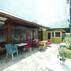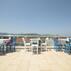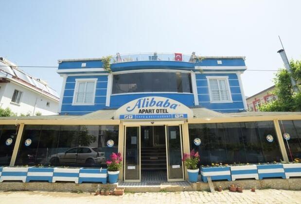 Mavi beyaz dış cephesi ve renkli mobilyalarıyla dikkat çeken Ali Baba Apart Otel, teras bölümündeki ahşap mobilyalarla dikkat çekiyor.