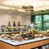 Kahvaltı, öğle yemeği ve akşam yemeği için ayrı ayrı paketlenmiş yemek seçenekleri mevcuttur ve oda servisi aracılığıyla da sunulur.