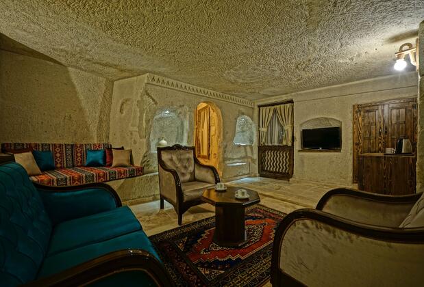 Castle Cave'nin odalarındaki açık renk geleneksel halılar, lüks mermer banyolar ve oyma taş duvarlar eşsiz bir hava yaratmaktadır. Her odada balkon vardır. Konuklara her sabah eksiksiz açık büfe kahvaltı servis edilmektedir. Ayrıca, gün boyu ücretsiz çay-kahve ikramı yapılmaktadır. Bu eşsiz bölgeyi görmenin en iyi yolu sıcak balon turuna katılmaktadır.