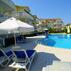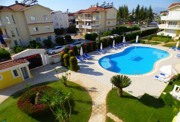 Dairelerde bahçeye ve havuza bakan mobilyalı bir balkona açılan boydan boya pencereler, TV ve 2 kanepe içeren ferah bir oturma odası bulunmaktadır. Dairelerin 3 yatak odasında da çift kişilik yatak vardır. Ayrıca, biri duşlu diğeri küvetli 2 banyo yer almaktadır.