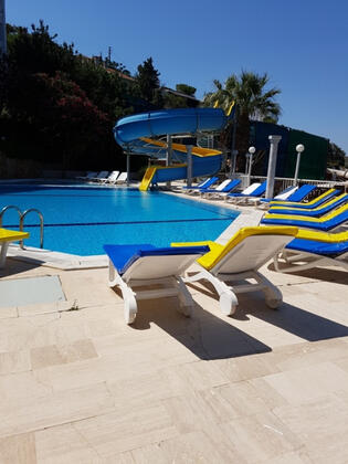Tesis orta kalite fakat iyi ve ferah. Balkonu ve odası geniş, manzara harika. Özellikle personel gayet iyi, yemekler ve içecekler tatmin edici. Dalgıç gereçleri, dalgıç hocası ve denizi özellikle adaların mesafesi yüzmeyi sevenler için mükemmel ötesi. Fiyatı çok makul. Doğacı turistlerin yeri. `Çeşme`'de daha pahalı lüks otelleri tercih etmememizin sebebi deniz, ferahlık ve sakinliği sebebiyledir.