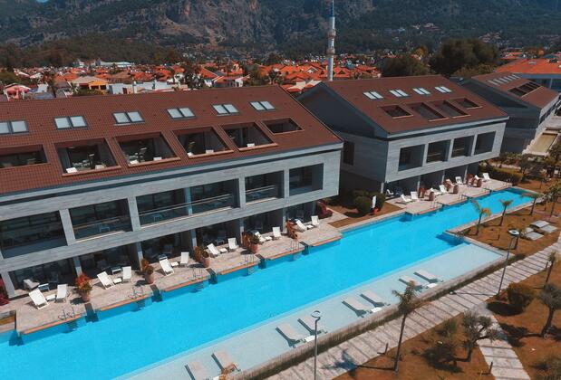 Yat şehri Göcek'te denize 800 metre mesafede konumlanan D-Resort, donanımlı bir otelde konforlu bir tatil isteyenler için doğru seçim! Butik konseptte hizmet veren otelde mavi ve yeşilin dinlendirici etkisiyle tanışıyor, 8 ünite seçeneği sunan 103 odasından birinde konaklarken güler yüzle verilen kaliteli bir hizmet alıyorsunuz.