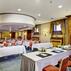 Kahvaltı, öğle yemeği ve akşam yemeği için ayrı ayrı paketlenmiş yemek seçenekleri mevcuttur ve oda servisi aracılığıyla da sunulur.