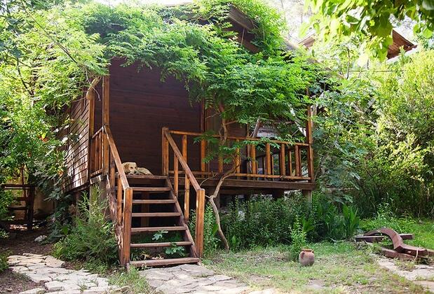 Güne peynir, zeytin, domates, biber, salatalık, bal ve reçel içeren zengin bir kahvaltıyla başlayabilirsiniz. Talep üzerine omlet ve meyve de sunulmaktadır. Akşam yemeğinde 3 çeşitli yemek servis edilmektedir. Gün boyunca çay ve kahve ikramı da yapılmaktadır. Olympos antik kenti Eski Beyaz Pension'a 3, 5 km uzaklıktadır.