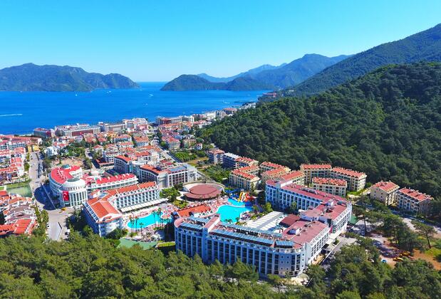 Yemyeşil çam ormanları arasında bulunan Green Nature Resort Marmaris'in güzel atmosferini direkt olarak hissetmenizi sağlıyor. 32. 000 metrekarelik geniş bir alana konumlanan bu tesis, yeşil ve mavinin buluştuğu güzel manzaralara eşlik etmenizi mümkün kılıyor. Sizler de şehir hayatının stresini ve iş yükünü böyle güzel bir lokasyondaki otelde atabilirsiniz.
