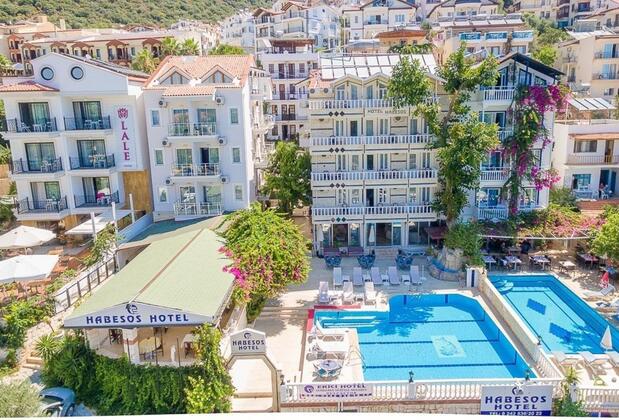 Kaş merkezinde denize sıfır konumda yer alan ve manzaralı konaklama birimlerine ev sahipliği yapan Habesos Otel, dört mevsim boyunca hizmet vermektedir. Bünyesinde açık yüzme havuzunun yanı sıra şezlong ve şemsiyelerle donatılmış güneşlenme terası da bulunan otel, siz misafirlerin ihtiyaçları ön planda tutularak dizayn edilmiştir.