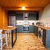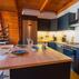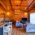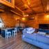 Yemek yeme alanı bulunan bungalov ev, modern ve konforlu şekilde dekore edilmiş durumda.