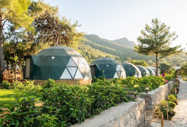 Jakuzili seçenekler dahil, her bir glamping ünitesi, doğa ile iç içe, lüks bir konaklama deneyimi vadediyor. Yarı olimpik yüzme havuzu, ücretsiz otopark, Wi-Fi, 24 saat giriş imkanı ve elektrikli araç şarj istasyonu gibi modern imkanlarla donatılmış olan tesis, denize ve Cennet Koyu'na yakınlığıyla da dikkat çekiyor. Restoran & Bar ise lezzetli yemekler ve serinletici içeceklerle gününüzü taçlandırıyor. Bu glamping tesisi, doğa yürüyüşlerinden, denizde yüzmenin keyfine varacağınız ve gece hayatını keşfedeceğiniz bir tatil sözü veriyor.