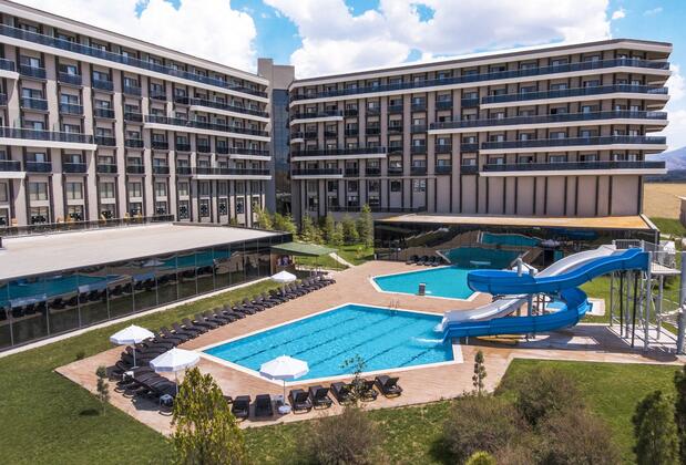 Ülkemizde termal denildiğinde ilk akla gelen yerlerden biri olan Afyonkarahisar'ın Sandıklı ilçesinde, 16. 000 metrekare alanda kurulu May Termal Resort & Spa, bölgenin 2000 yıllık kaynak sularıyla şifa bulabileceğiz lüks ve konforlu bir otel. Tesiste erkekler -kadınlar için ayrı ve ortak kullanımlı havuzlar ile ailelere özel banyolar bulabiliyorsunuz.