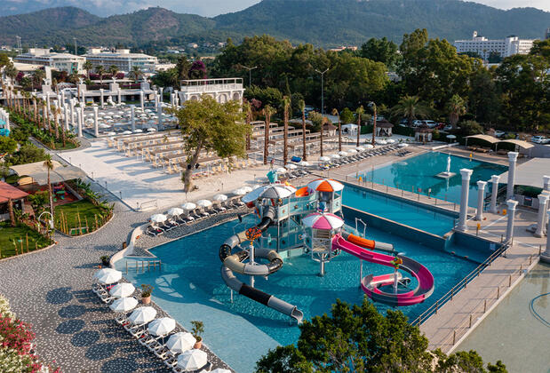 Miarosa Kemer Beach Hotel, Antalya'nın büyüleyici Kemer bölgesinde, mavi ve yeşilin kusursuz birleştiği bir konumda sizi bekliyor. Her şey dahil konseptiyle, denizden sadece 500-600 metre uzaklıkta, kendine ait kum plajı ile tatil anlayışınıza yeni bir boyut getiriyor. Çocuklar için sunduğu bebek bakım hizmeti ile aile dostu bir ortam yaratan bu tesis, 100 metre uzunluğundaki sahil şeridi ve açık yüzme havuzu ile hem denizin hem de güneşin keyfini çıkarabileceğiniz bir cennet. Deniz bisikleti, kano gibi su sporları da dahil olmak üzere sınırsız aktivite seçeneği bulunduruyor.