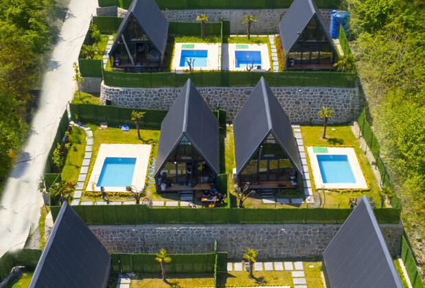 Poem Sapanca Bungalov, Nailiye'de Sapanca Gölü'nün nefes kesen manzarasına ve çevresindeki dağların büyüleyici güzelliğine sahip. Bungalovlar, basamaklar halinde dizayn edilmiş olup, her biri gölün eşsiz manzarasını ön plana çıkarıyor. Isıtmalı havuzlu ve jakuzili seçenekleriyle misafirlerine lüks ve konforun tadını çıkarma fırsatı sunan tesis, çocuklar için de geniş oyun ve eğlence alanlarına sahip.