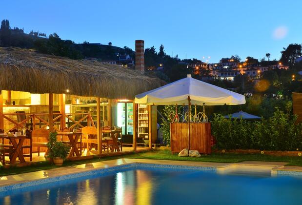 Meyve bahçesi içerisine kurulu olan tesiste gün boyu sevdiklerinizle keyifli saatler geçirebileceğiniz oturma alanları ve doğal bir yüzme havuzu(klorsuz sistem) yer almaktadır. Otele en yakın havalimanı 47 km uzaklıktaki İzmir Adnan Menderes Havalimanı'dır.