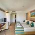 Tüm odalarda; duş ya da küvet/WC, fön, 24 saat sıcak su, telefon, klima (belli saatlerde) ve merkezi sistem, balkon, mini bar, TV, müzik kanalı, elektronik kasa, bornoz, su ısıtıcısı, kahve/çay ve laminant parke zemin bulunmaktadır. Otel, 12 yaşına kadar 1 çocuktan ücret talep etmektedir.