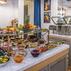 Kahvaltı, öğle yemeği ve akşam yemeği için ayrı ayrı paketlenmiş yemek seçenekleri mevcuttur ve oda servisi aracılığıyla da sunulur.