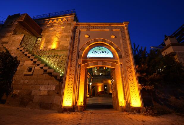 Vineyard Cave Hotel, Göreme'de, peribacalarının arasında kurulmuştur. Ücretsiz Wi-Fi erişimi bulunan tesis ayrıca köye ve vadiye bakan bir terasa ve geleneksel olarak dekore edilmiş mağara odalarına ve kemerli odalara sahiptir. Vineyard Cave'in odalarında standart olarak özel bir banyo bulunmaktadır. Bazı odalarda ayrıca Türk hamamı ve şömine de mevcuttur.